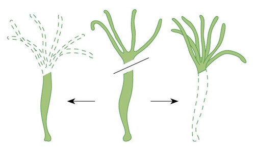 У гидры сильно развита способность к регенерации. В её эктодерме есть промежуточные клетки. При любом повреждении тела гидры эти клетки, расположенные вблизи раны, начинают усиленно делиться. Через некоторое время рана зарастает.