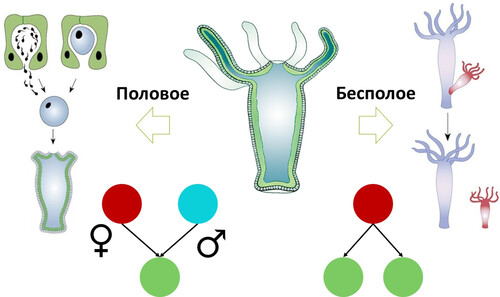 Среди гидр встречаются гермафродиты — животные, у которых на одной особи развиваются и мужские, и женские половые клетки.