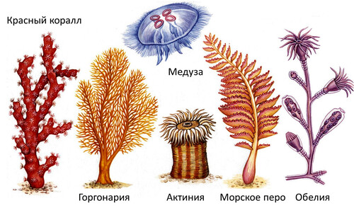 К типу Кишечнополостные относят около 9 тыс. видов многоклеточных животных, имеющих простое строение. Представителями этого типа являются медузы, актинии, коралловые полипы, гидры. Живут они преимущественно в морях. Лишь немногие виды приспособились к обитанию в пресных водоёмах.