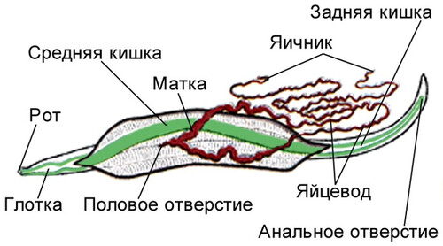 Аскарида человеческая является представителем класса нематод. Чаще всего она паразитирует в тонком кишечнике детей. Веретеновидное тело аскариды розовато-белого или желтоватого цвета. Органов прикрепления аскарида не имеет. Она удерживается в теле хозяина, упираясь в стенки кишки острыми концами тела.